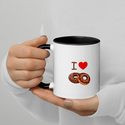 Tasse mit farbiger Innenseite I Love Donuts Rechtshänder